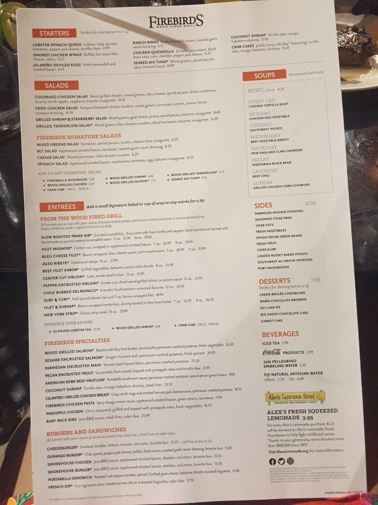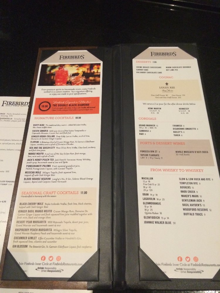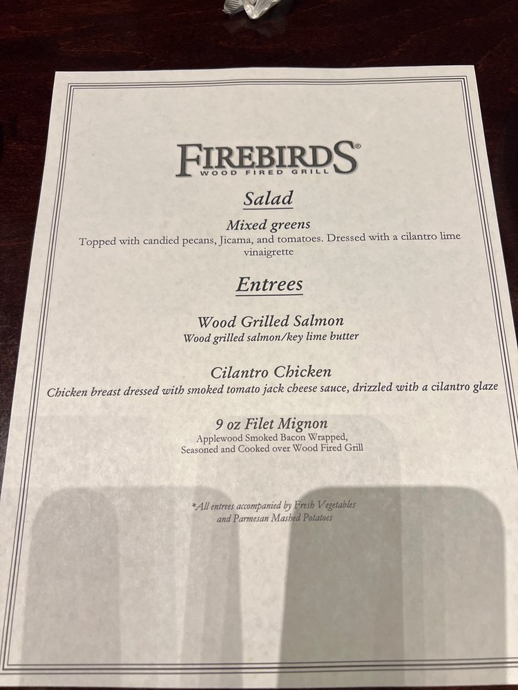 Firebirds Wood Fired Grill is a vibrant restaurant located in Saint Charles, MO. Offering a mix of casual, trendy, and classy ambiance, Firebirds boasts a variety of utilities like reservations, delivery, and takeout services. The menu features tempting options such as the Lobster Fondue Salmon, Parmesan Crusted Chicken, and the Chilean Sea Bass. The Wood Fired Steaks section offers delights like the Filet & Shrimp and Cajun Ribeye. Customers rave about the delectable dishes, friendly service, and inviting atmosphere. Reviews mention must-try items like the Double Black Diamond Martini and the Honey Garlic Chicken, setting the stage for a memorable dining experience. Don't miss out on the exquisite flavors and top-notch service at Firebirds Wood Fired Grill.